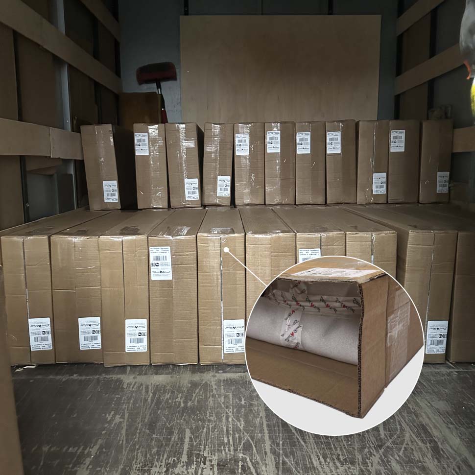 5-ти слойный гофрокартон, паралон и обвязка пластиковой лентой надежно защищают товар от возможных ударов при транспортировке.