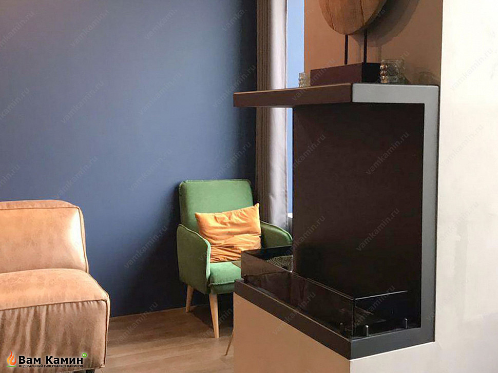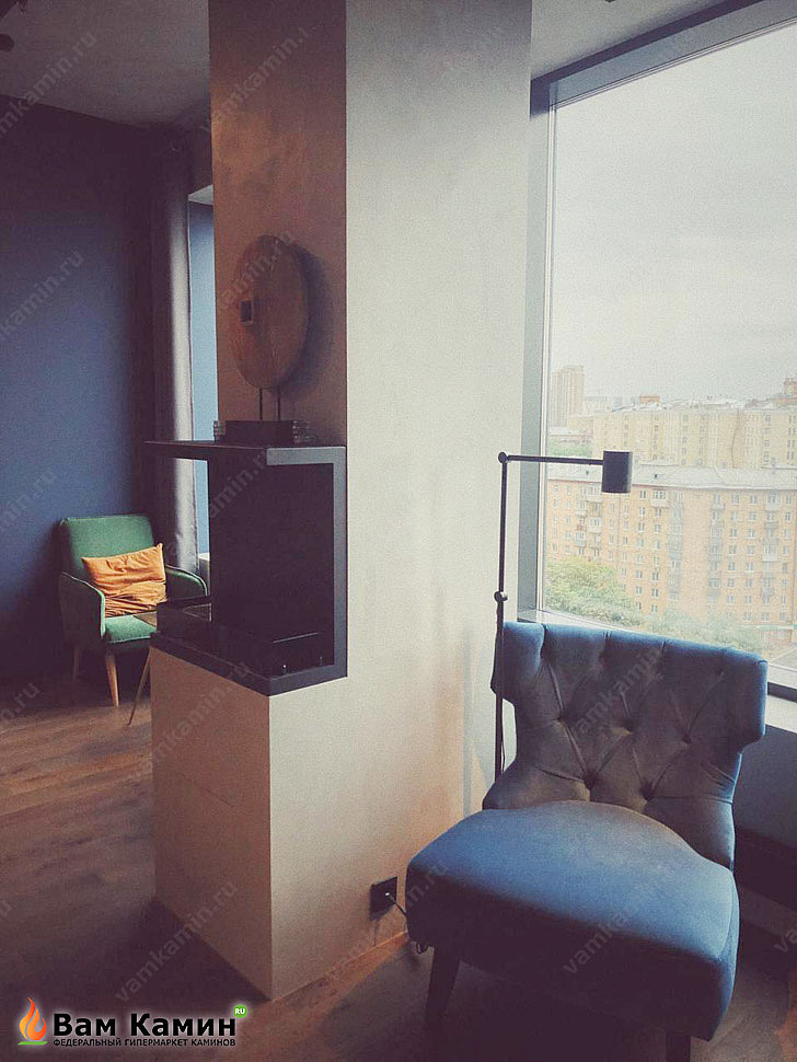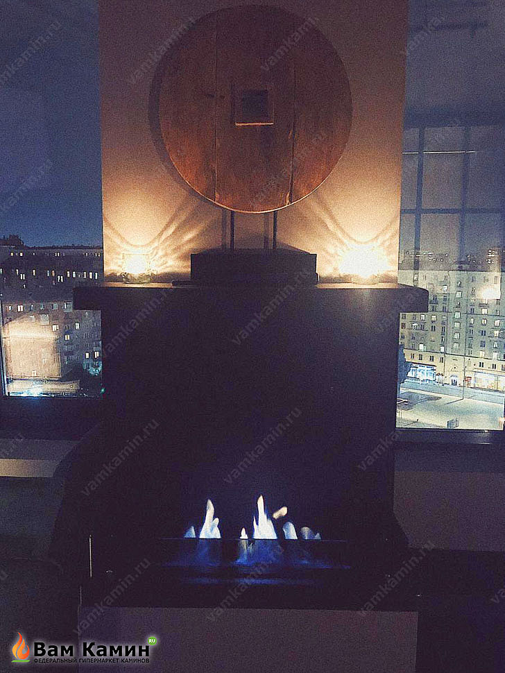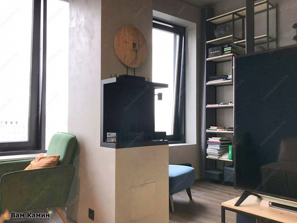 Биокамин фронтальный SteelHeat Leader 600 превратился в отличный дизайнерский декор для дома. Этот биокамин установили на выступ колонны по середине комнаты так, что стало удобно любоваться видом горящего пламени со всех сторон квартиры. Такой самобытный предмет интерьера, удачно вписанный в обстановку, отлично подчеркивает вкус владельца.